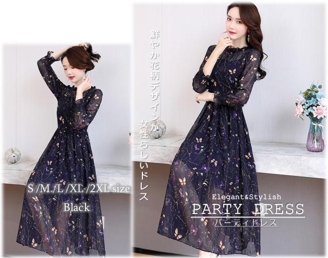 ハイウェスト シフォン ファッション 大人 代30代40代 ドレス 披露宴 Aライン パフスリーブ ポイント最大5倍 ワンピース ワンピ ス レディース パーティー 花柄 美脚 結婚式ワンピース 結婚式 プリーツ パーティードレス 大きいサイズ 他と被らない 10 10限定